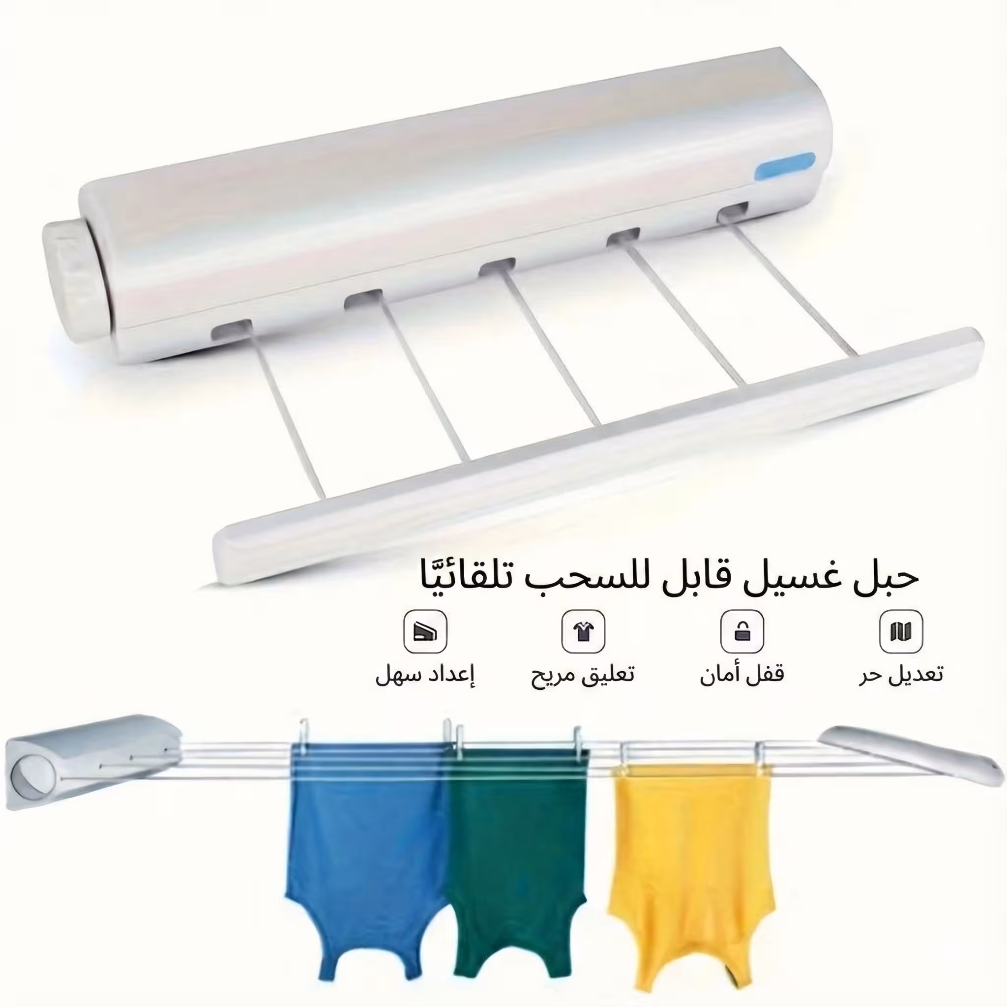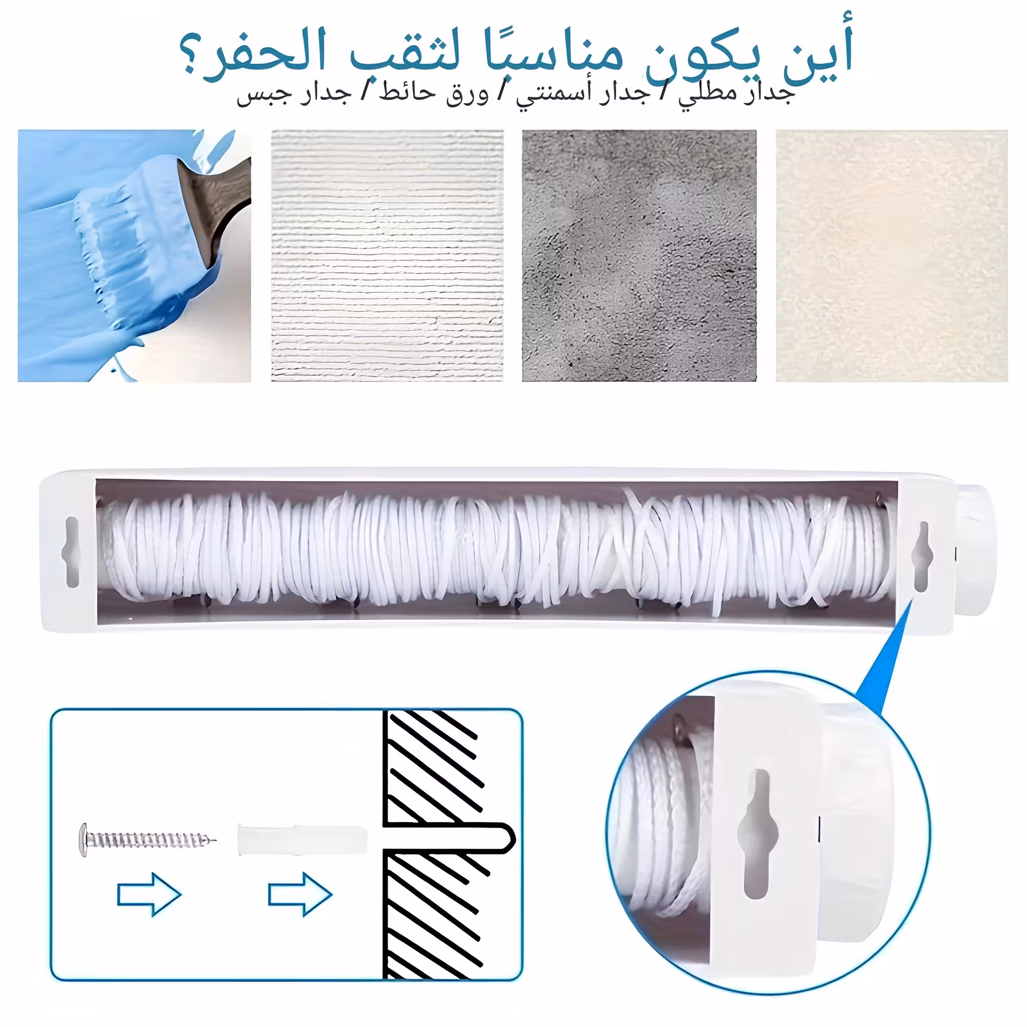 منشر جد عملي، يثبت على الحائط، ويتوفر على 5 حبال قوية قابلة للتمدد تعطيك مساحة كبيرة لنشر الملابس بدون ما تشوه الديكور أو تعمر لك البيت.
